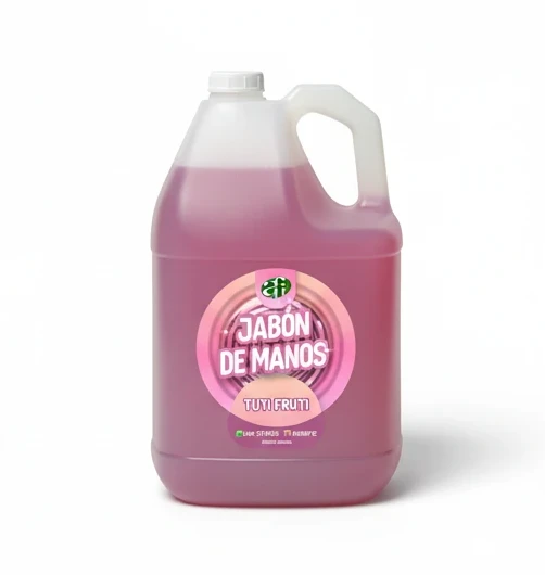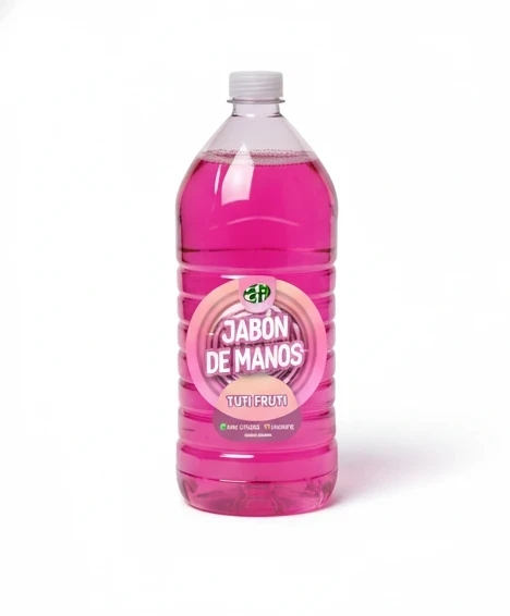 Jabon líquido para manos con fragancia Tutti Frutti, ideal para limpiar y cuidar tus manos.